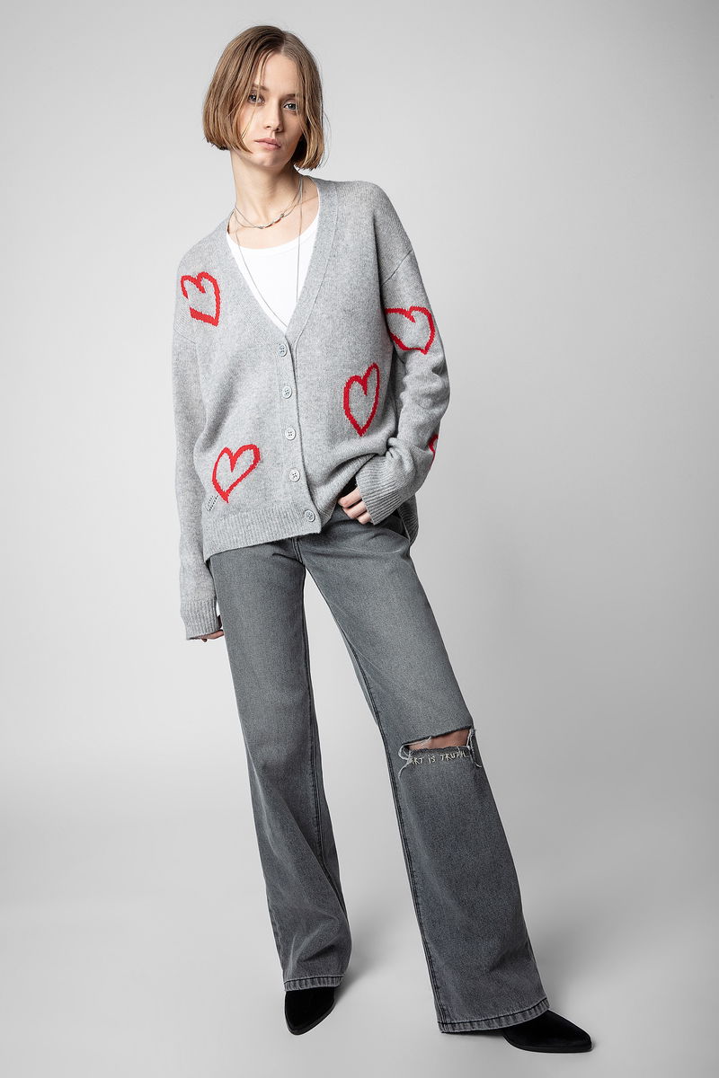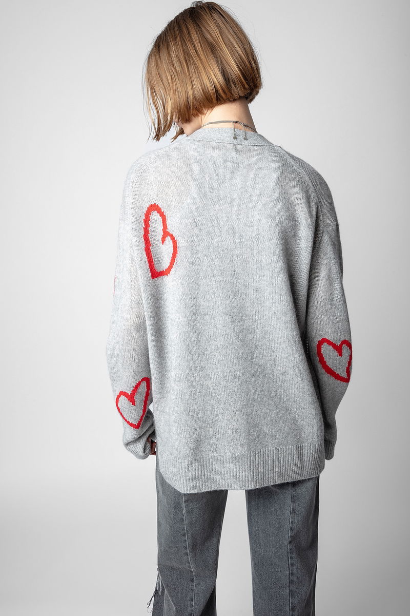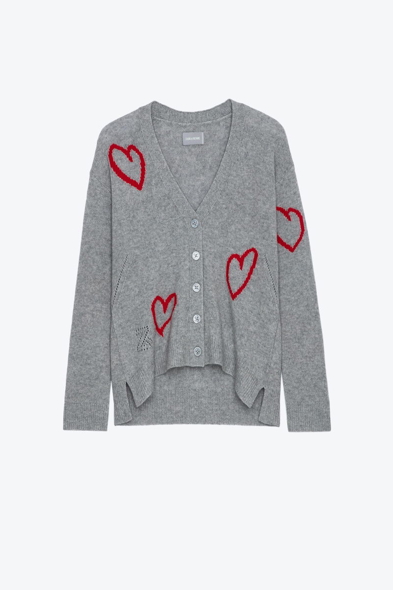 Embellished with intarsia jacquard contrasting hearts, this button-front 100% cashmere long-sleeved cardigan is unbelievably soft.