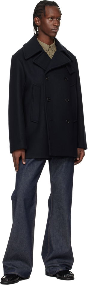Short wool coat - V-neck - Double-breasted - Piped pockets - Long sleeves.