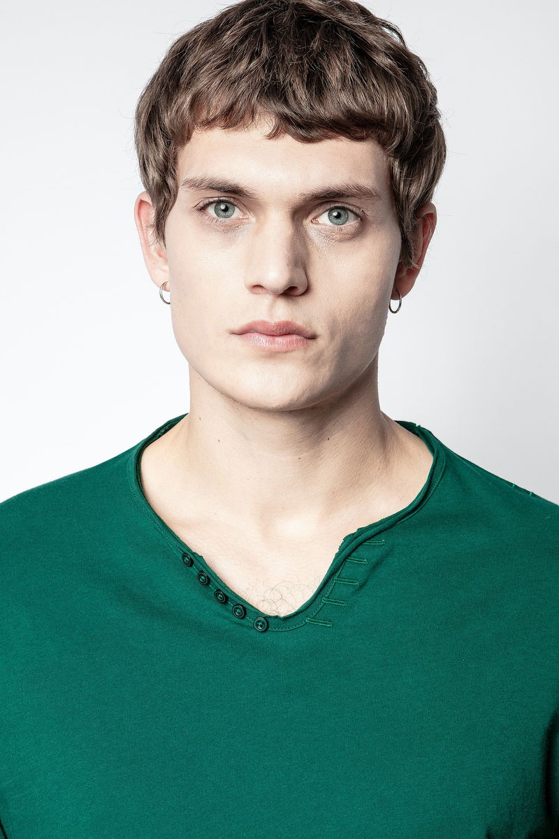 Zadig&Voltaire men’s dark green T-shirt in 100% organic cotton with iconic henley neckline and long sleeves.