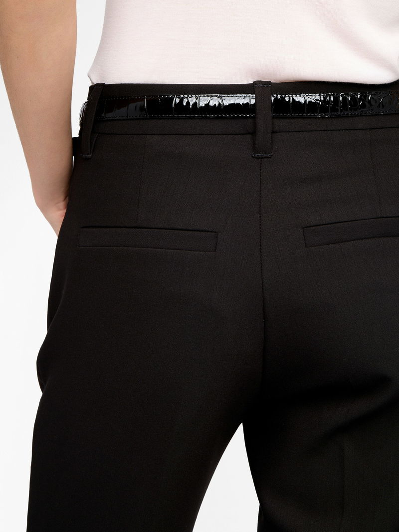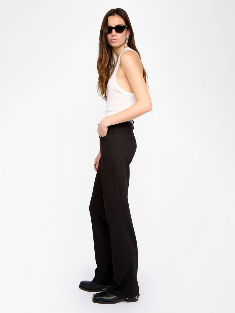 Tailored trousers. Italian pockets and welt pockets. Flared cut. High waist.