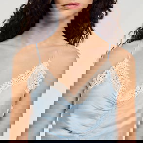 Women’s Overseas blue Japanese satin midi dress - Round neck with button fastening - Short buttoned sleeves - Fitted at the waist and elasticated waistband - Gathered details on the back - 2 front pockets - Asymmetrical skirt.
