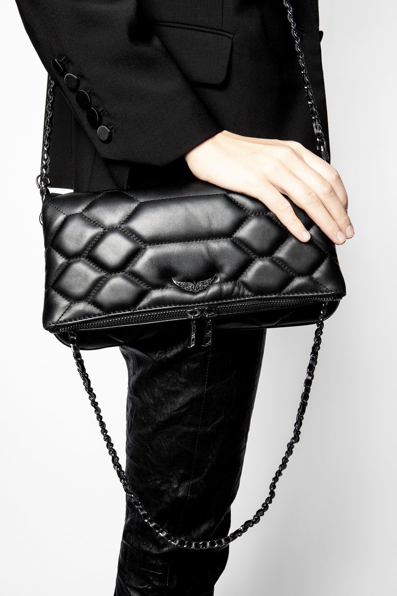 The iconic Rock clutch will take you seamlessly from day to evening. Featuring a double chain and leather strap, so you can choose to wear it across the body or on the shoulder.