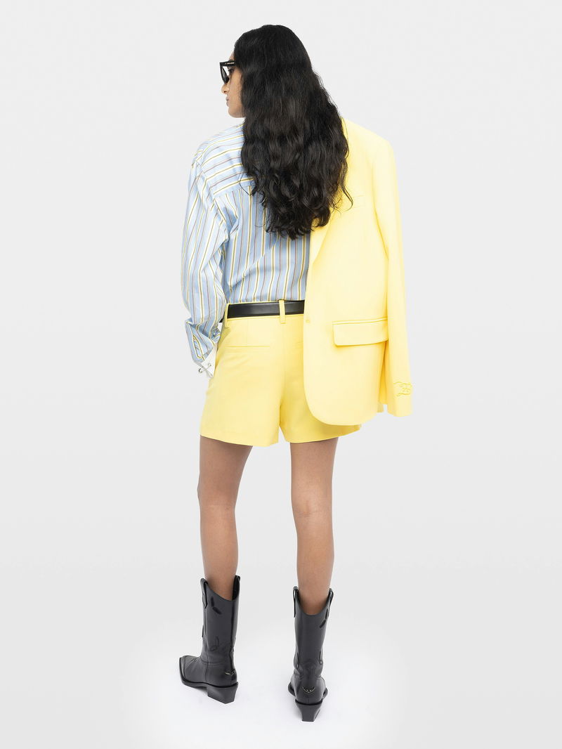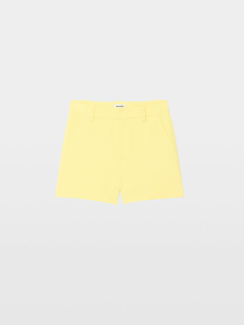 Tailored shorts. Button fastening and belt loops. Slant pockets and welt pockets.