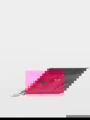 Women’s purse in Flash ecru patent leather with vintage effect. Zip fastening with metal medallion pull tab. 3 card slots, one coin compartment with press studs, one double pocket. One flat pocket. Metal wings. Topstitching. Embossed with Zadig&Voltaire.