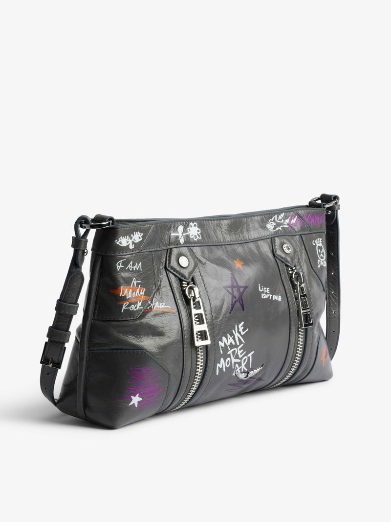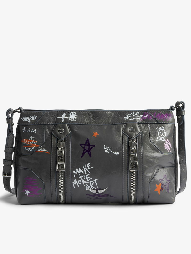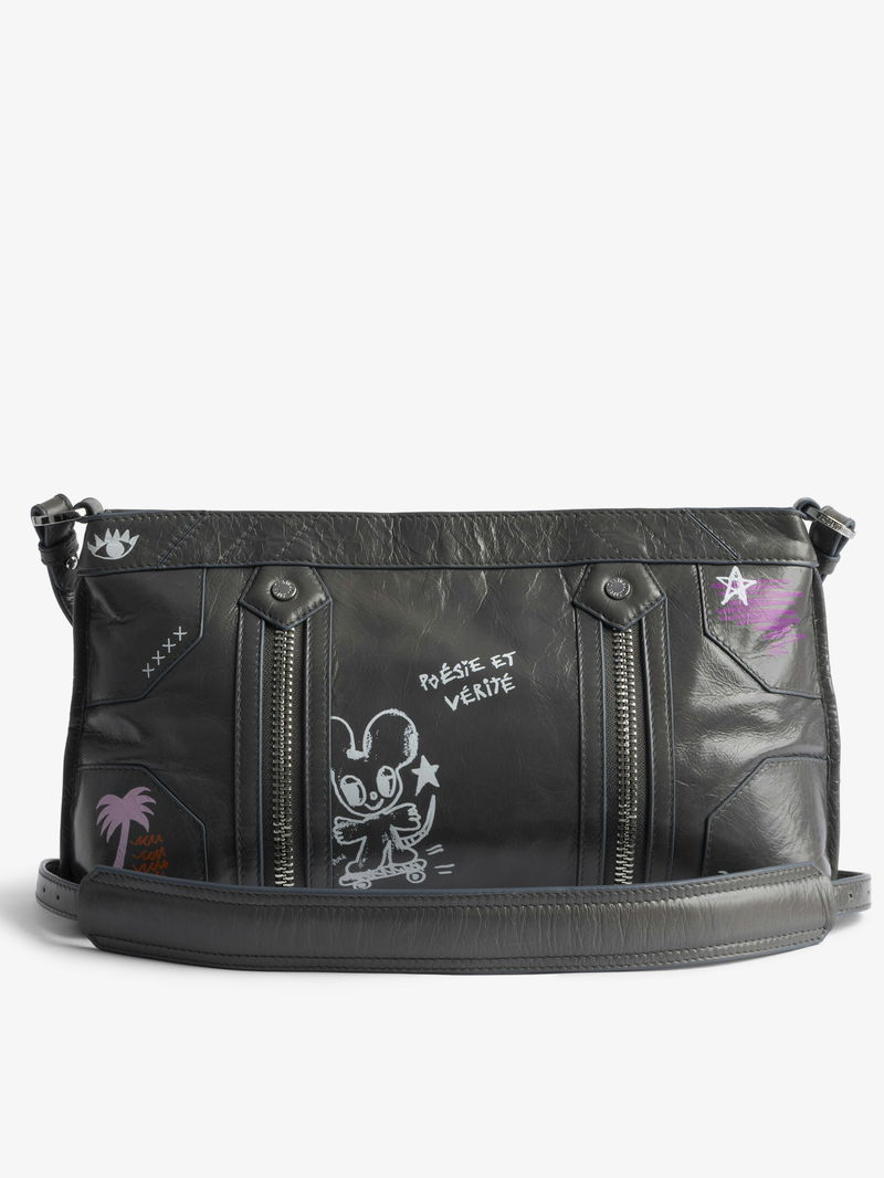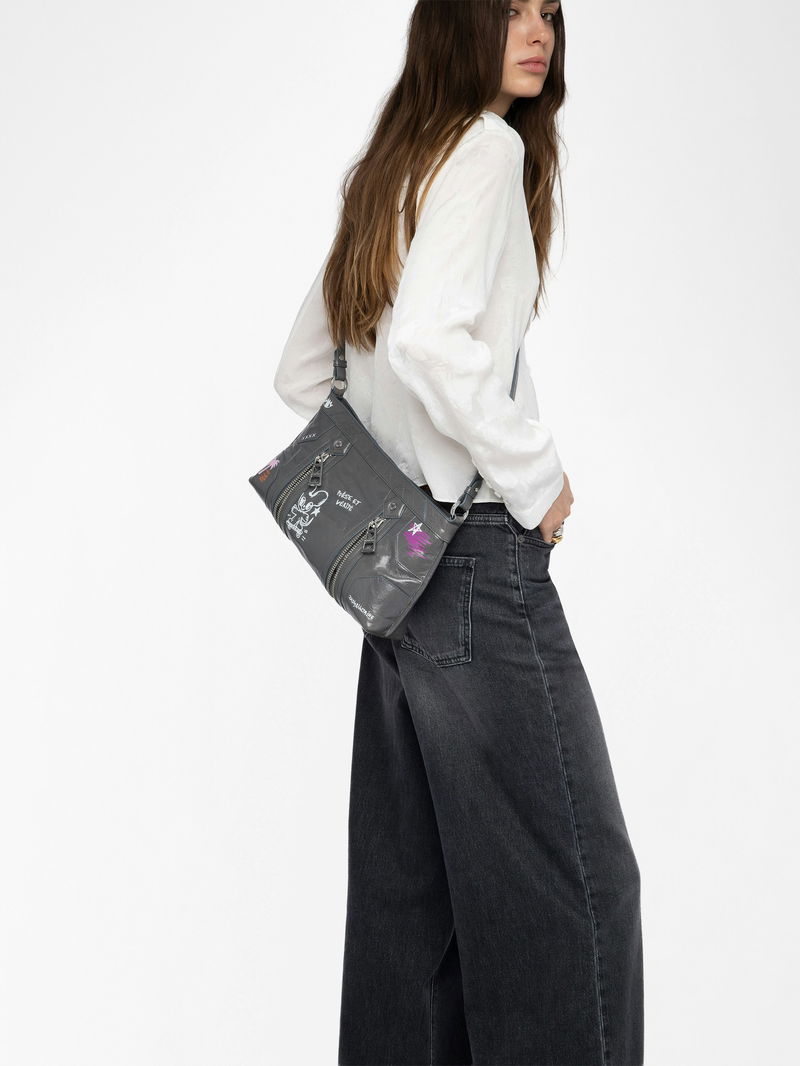Patent leather bag with vintage effect. Humberto Cruz print. Adjustable and removable leather strap.