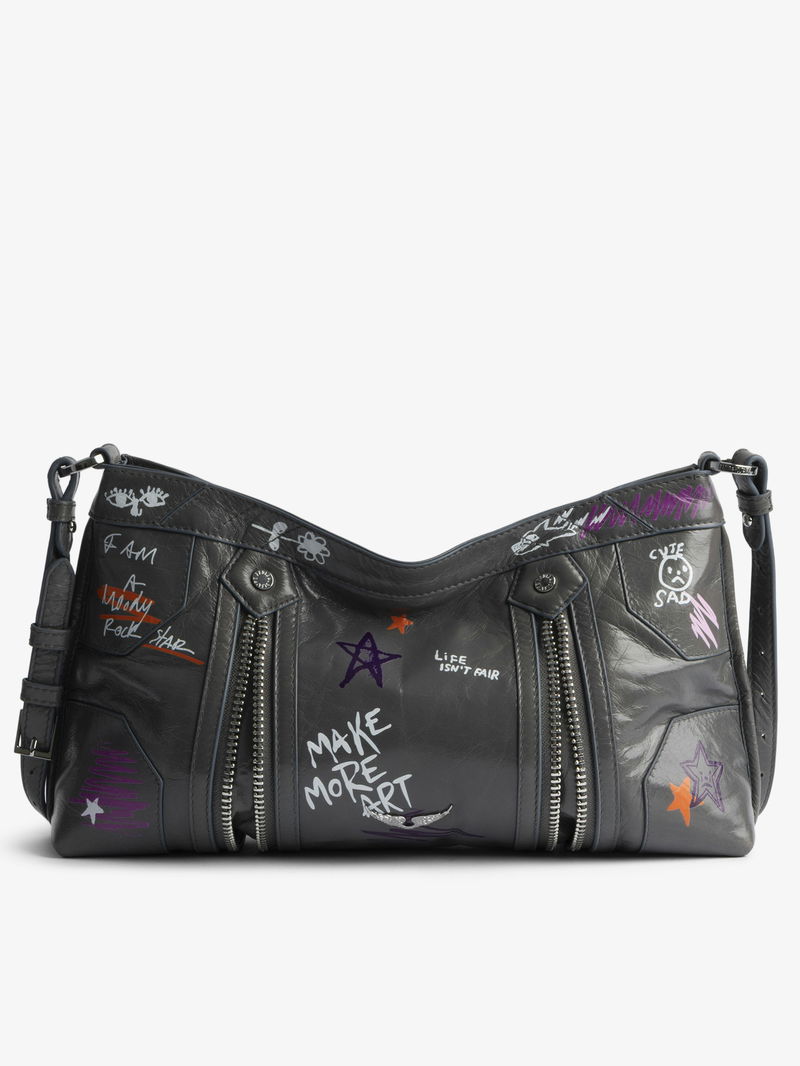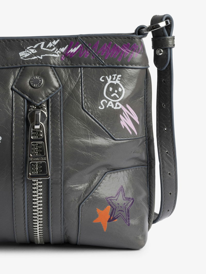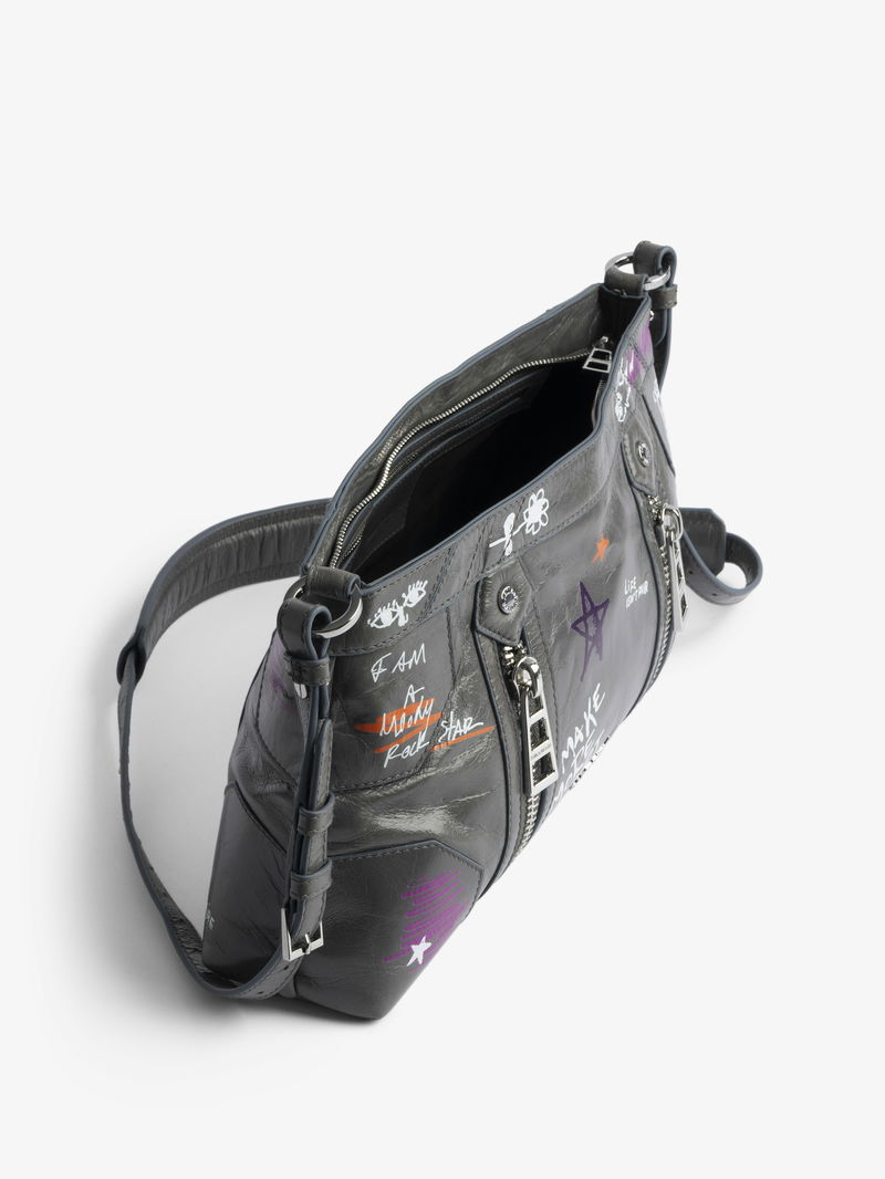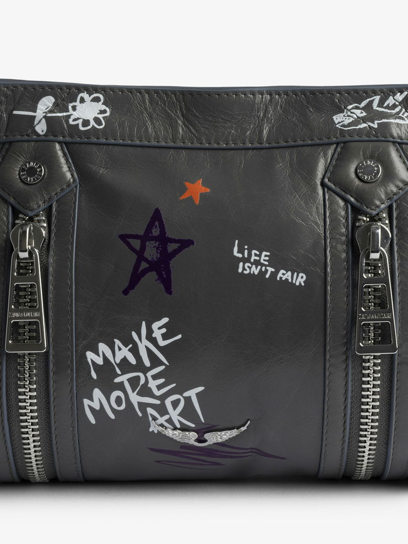 Patent leather bag with vintage effect. Humberto Cruz print. Adjustable and removable leather strap.