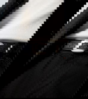 The iconic C-shaped buckle designed by Cecilia Bönström is integrated into a belt with this reversible leather version.