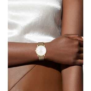 Zadig&Voltaire women’s steel-tone watch made of stainless steel, matte green dial, quartz movement, cutout wings motif, 33 mm diameter round case, steel case and strap.