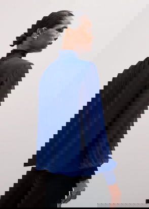 Satin blouse - ZV jacquard pattern - V-neck - Long sleeves - Ruched details.