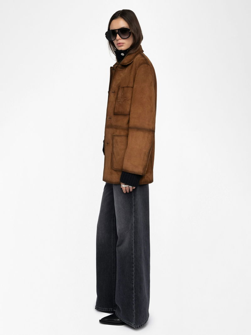 Suede jacket. Classic collar. Button fastening. Patch pockets. Long sleeves. ZV embroidery signature.