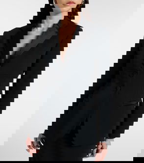 Women's black straight-cut blazer - Notch lapel collar, edges and cuffs adorned with rhinestones - Button fastening - Back vent - 2 side flap pockets and 1 piped chest pocket - Long sleeves with split cuffs.