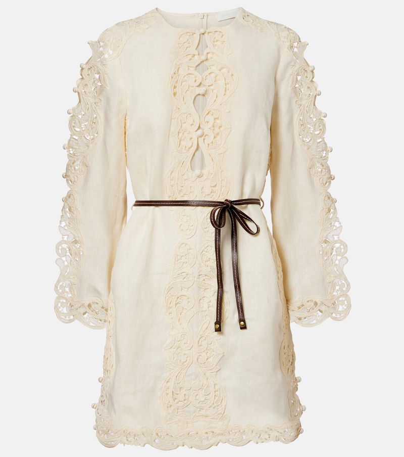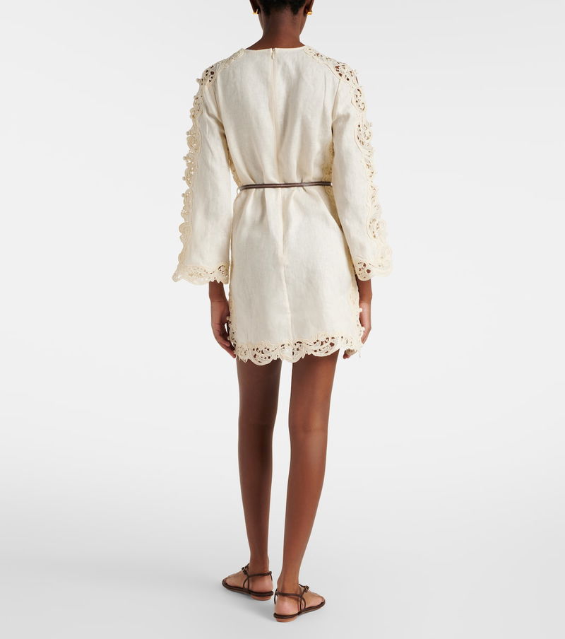 Awaken Belted Embroidered Linen Minidress