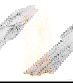 Shirt dress, Floral-print, Twill, Ruffled trims, Detachable waist tie, Elasticated cuffs, Button fastenings along front, Concealed zip fastening along back, Non-stretchy fabric, Lightweight fabric.