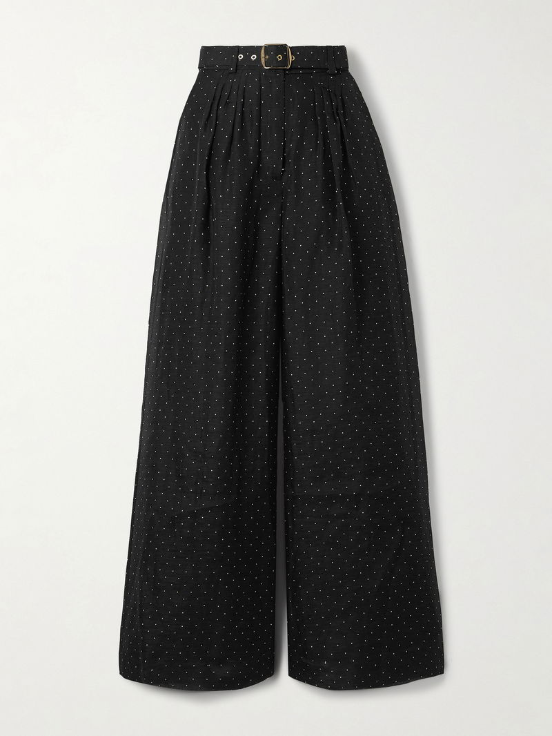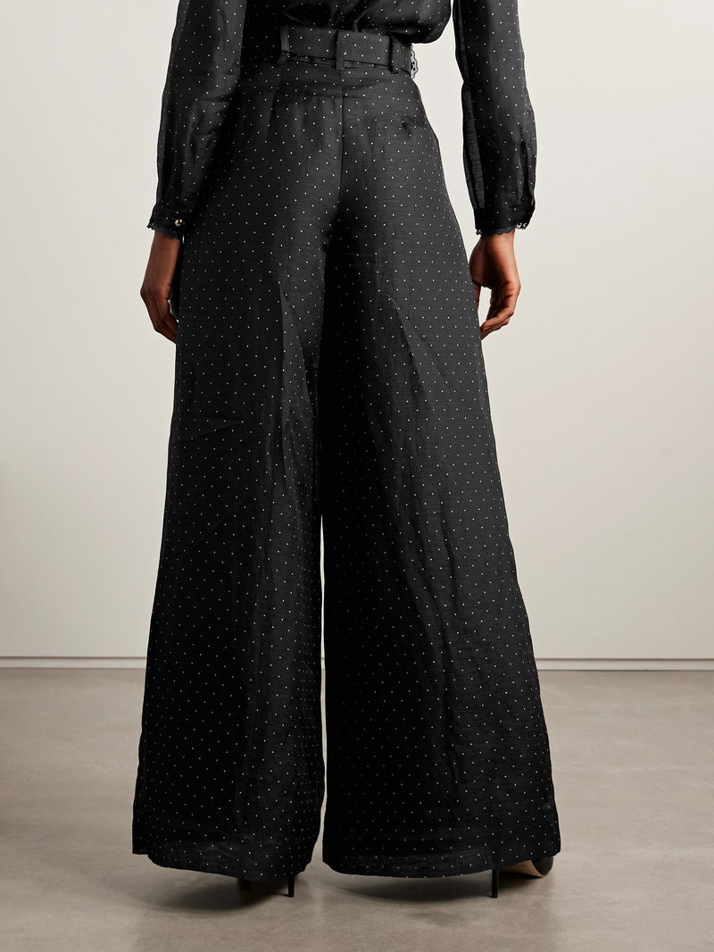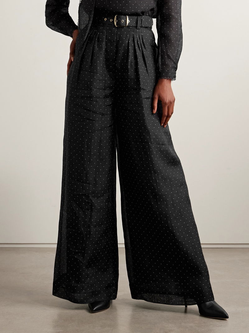 Zimmermann's pants are designed as part of a set with the matching blouse - both are printed with polka-dots. They're tailored from lightweight linen and silk-blend and have sharp pleats at the belted waistband.