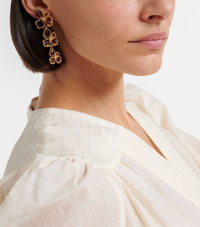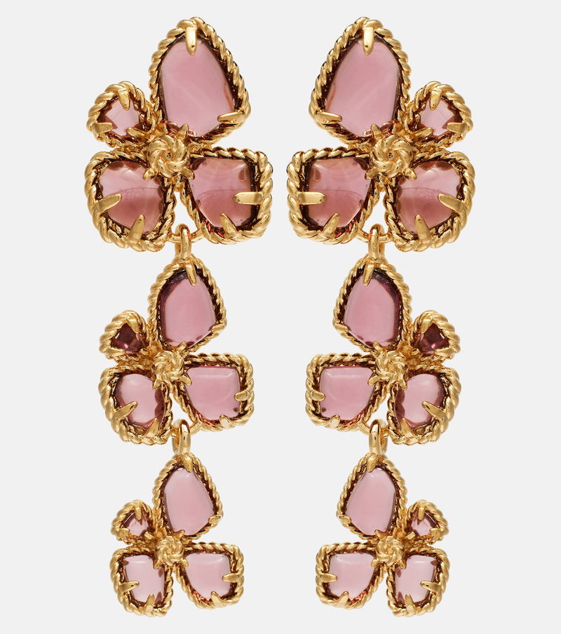 Add a whimsical touch to your looks with the Bloom Large drop earrings from Zimmermann. The gold-toned pair features eye-catching glass adornments in floral-inspired silhouettes.