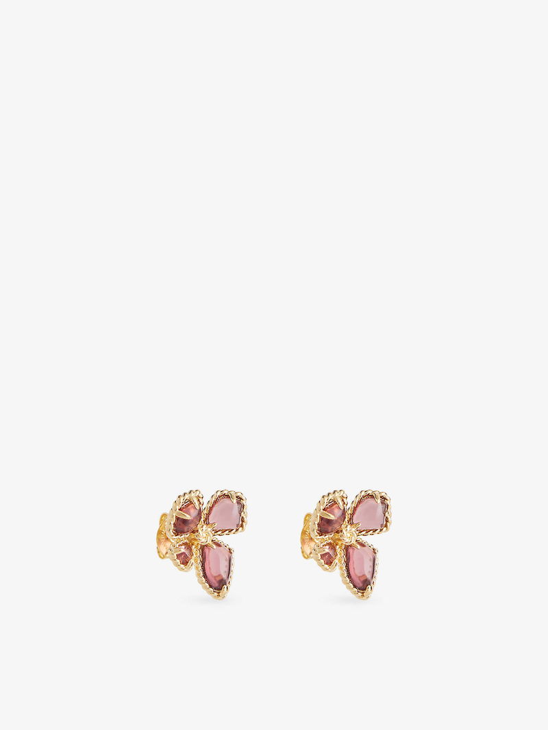 Zimmermann 12ct gold plated brass stud earrings. Floral motif, stud-style, stone embellishment, polished finish.