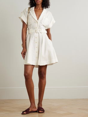 An intricate patchwork print imbues Zimmermann's mustard-yellow Brightside dress with a characteristically vintage air. Crafted from lightweight linen to a 1960s-inspired mini silhouette, it's shaped with a high collar and balloon sleeves, then cinches around the waist with a bamboo-buckle belt. Wear it with a woven bag and leather sandals to channel the label's bohemian spirit.