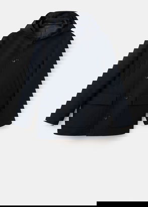 Coat, Brushed-felt, Wool-blend, Ring embellishment, Buttoned tabs, Hooded, Two side flap pockets, Fully lined, Toggle fastenings through front, Weighted, non-stretchy fabric