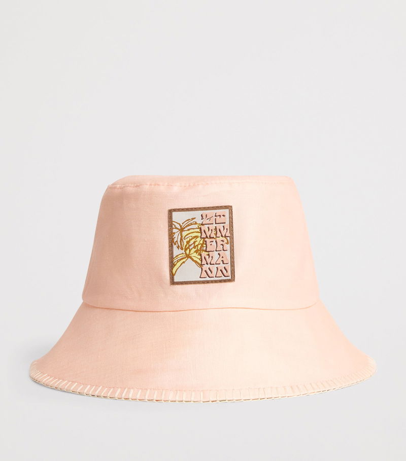 Zimmerman's flair for vibrant colours and organic detailing abounds in every piece - including its accessories. True to form, this cotton canvas bucket hat leans into a bohemian patchwork aesthetic, featuring a wide brim to counter the Australian summer heat and floral and paisley detailing.