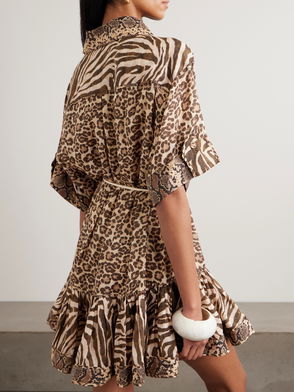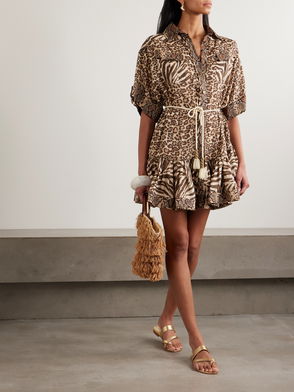Zimmermann's mini dress is traced with fringing along the edges and jacquard-woven with an all-over floral pattern. It's made from absorbent cotton-terry and has a deep V-neckline with a kangaroo pocket at the front.