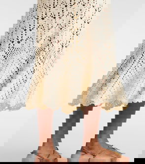 Crochet-trimmed Cotton Midi Skirt