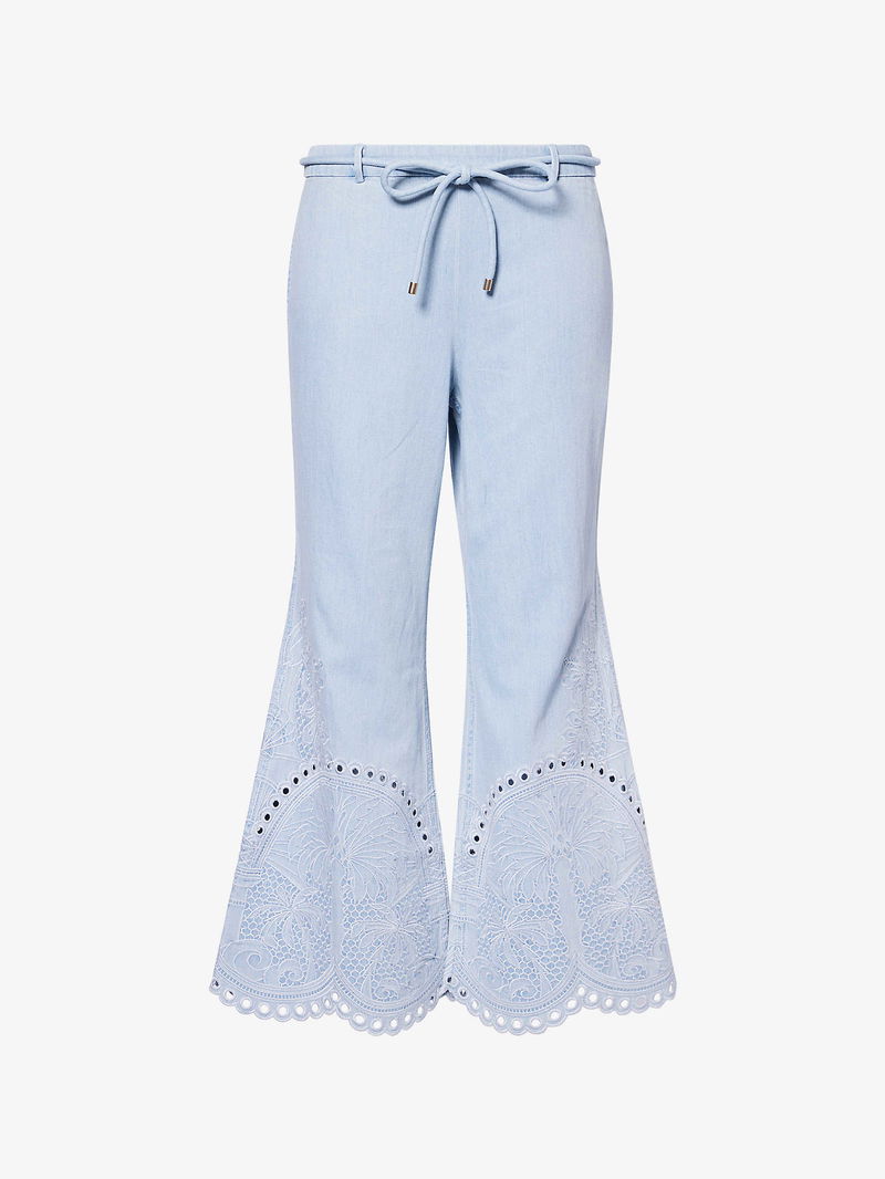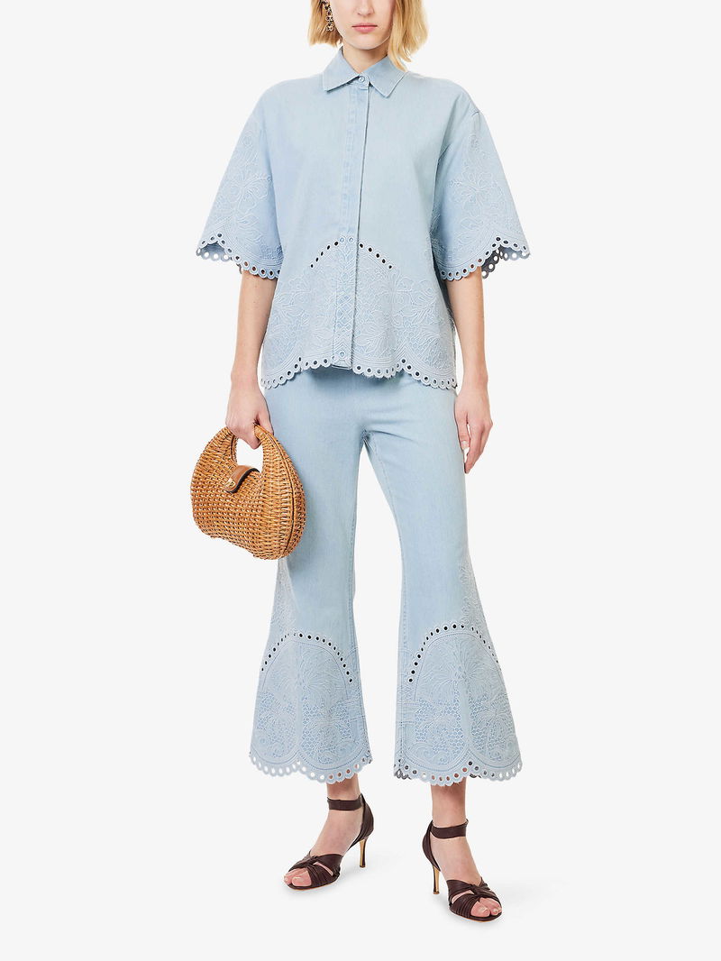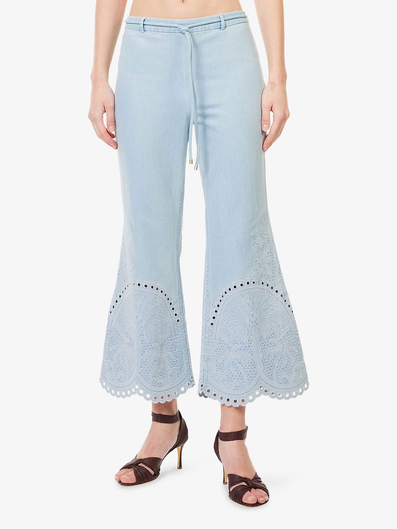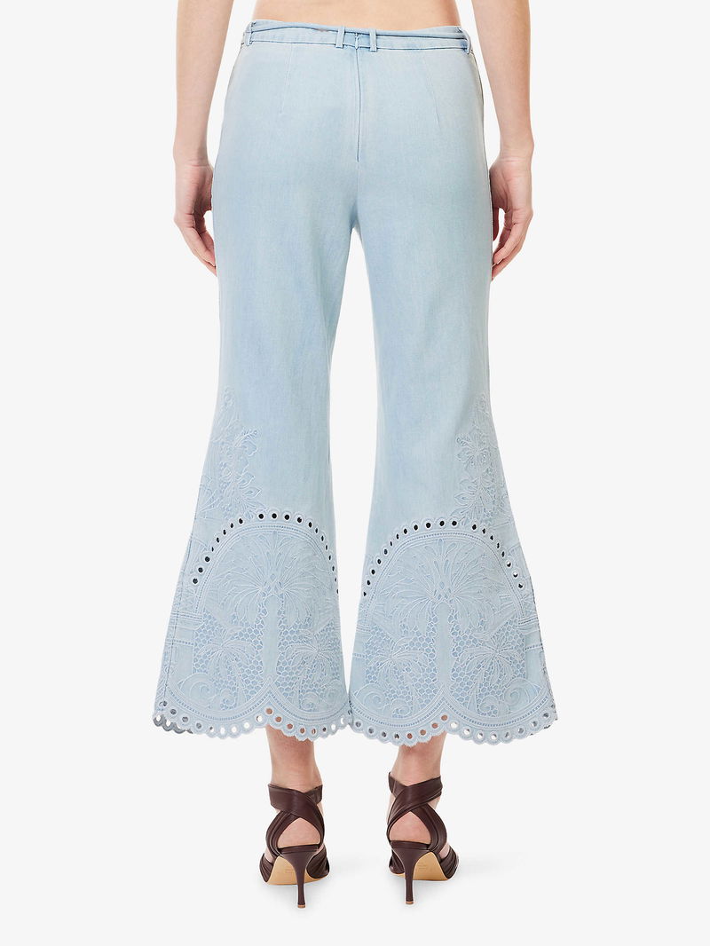 Cropped Wide-Led Embroidered Denim Jeans