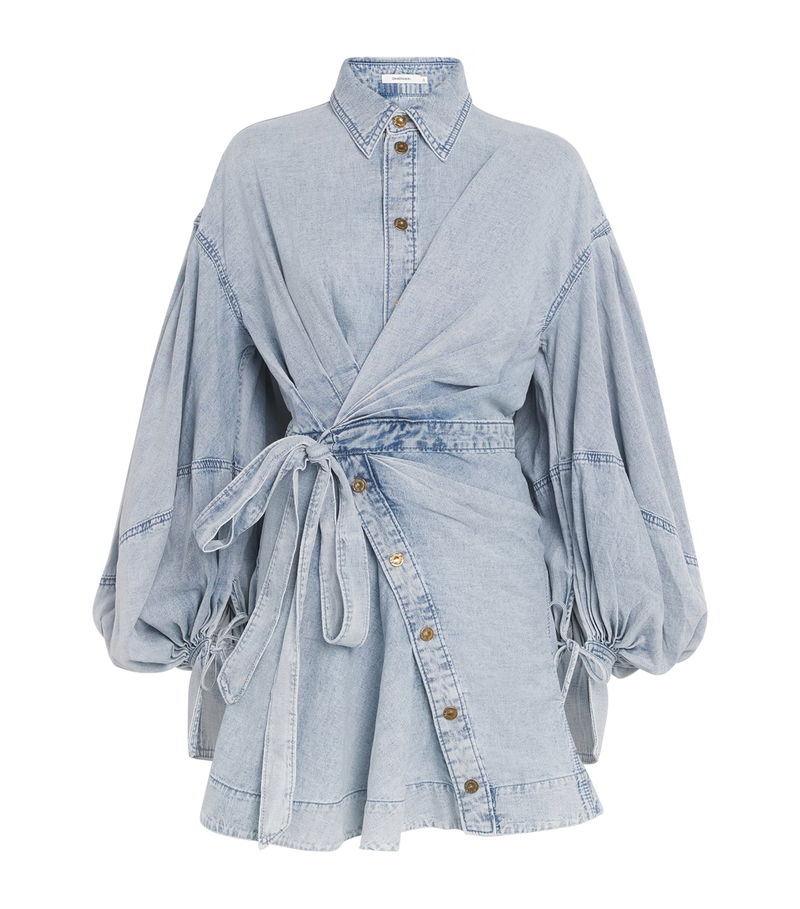 Functional, utility fabrics may seem the antithesis of Zimmermann - a master of all things fluid and feminine - but nevertheless, denim is seamlessly woven into this season's collection. The Rebellion mini dress reimagines the material with undeniable elegance, its silhouette defined by a sculpting wrap waist and ballooning sleeves tied with delicate bows.