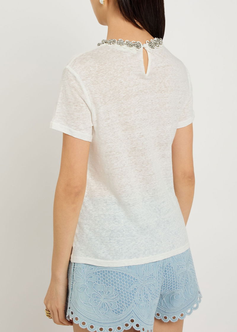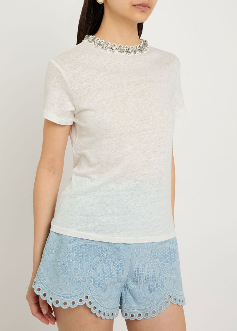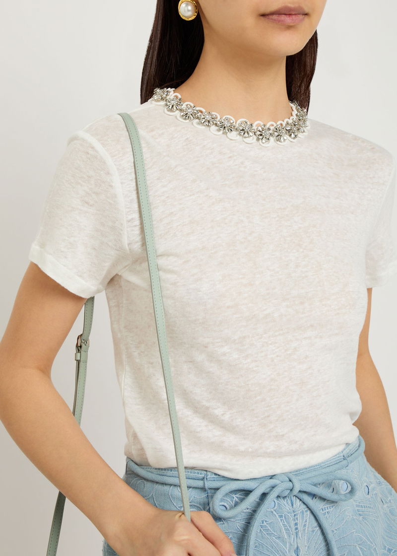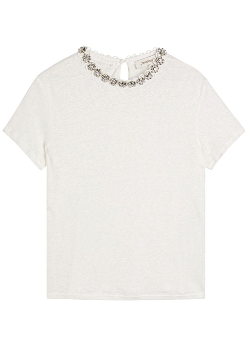 Made with at least 50% linen. Linen is made from the fibres of the flax plant. Flax is resilient and can grow in poor soil, using less water than cotton to produce.'