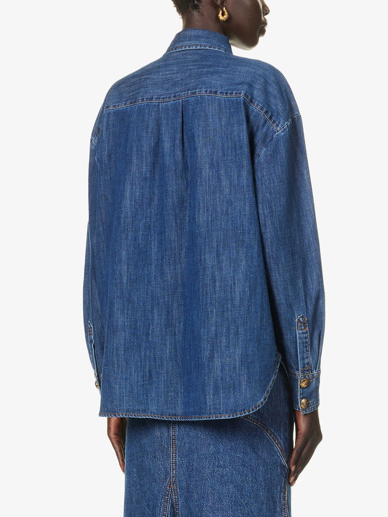 While we may think of Zimmermann as our romantic summer go-to, the Australian label proves it’s more than adept at contemporary, trans-seasonal pieces, too. Take this shirt, which is crafted from weighty denim to a relaxed shape defined by voluminous sleeves, exaggerated flap pockets and high-shine gold-toned hardware. We reckon it’s as suited for autumn strolls through the city as it is a day at the Rodeo.