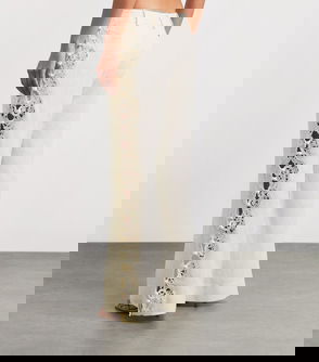 Straight-leg pants, Floral-print, Linen, Two side slit pockets, Two back welt pockets, Belt loops, High-rise cut, Concealed hook, button and zip fastening at front, Mid-weight, non-stretchy fabric.