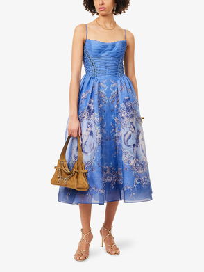 This season, Zimmermann channels a wayward spirit, with its Cruise 2026 collection, titled Twisted Romance, drawing inspiration from nostalgic tales of pirates and the extravagance of the New Romantics movement. A story of fluid forms and whimsical detailing unfolds with pieces like the Rebellion maxi dress, showcasing statement florals blooming on the lightweight, cascading frame.