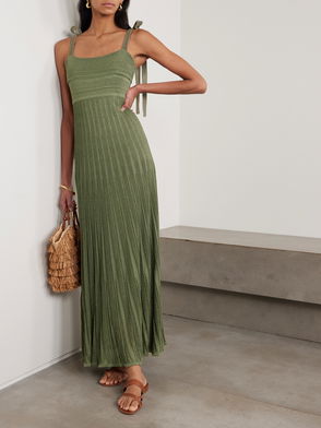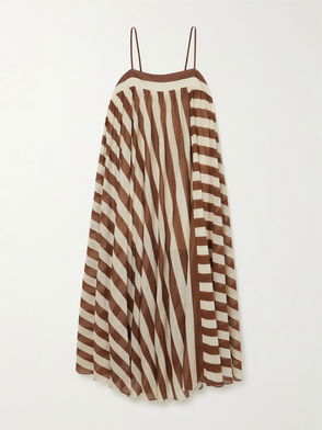 Zimmermann's 'Halliday' dress is printed with slim, sunset-hued stripes that trace diagonally across your frame.