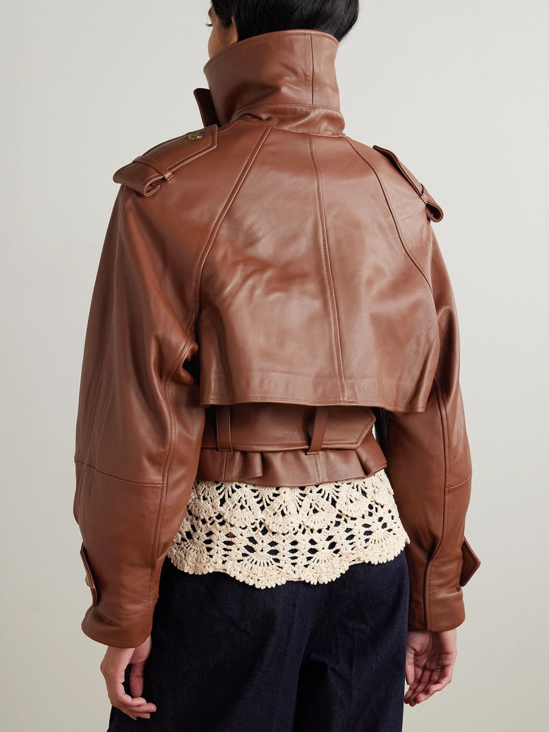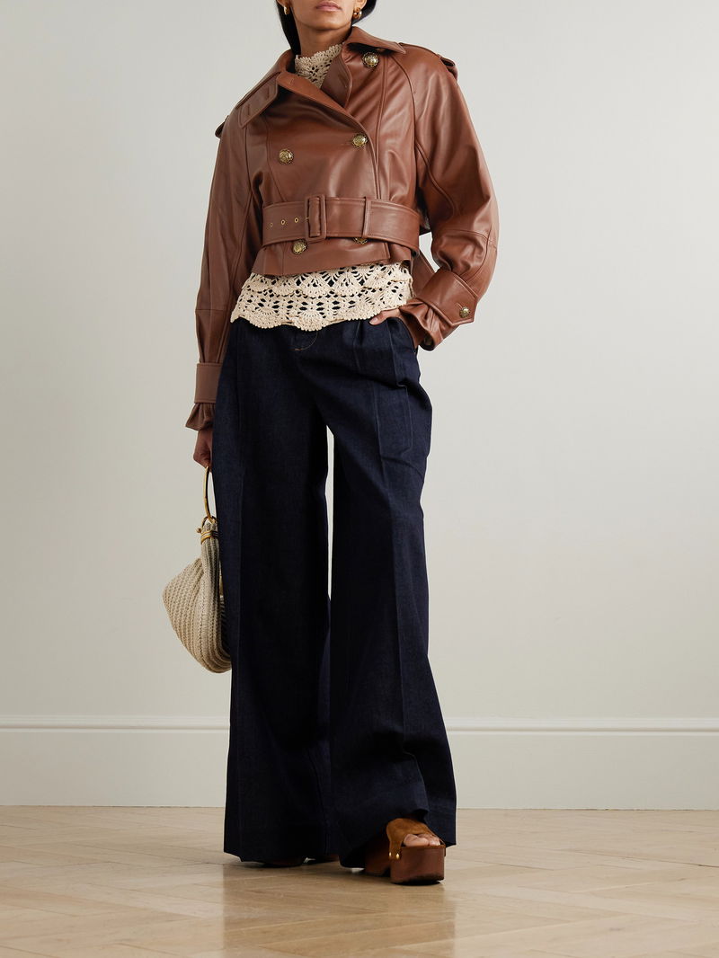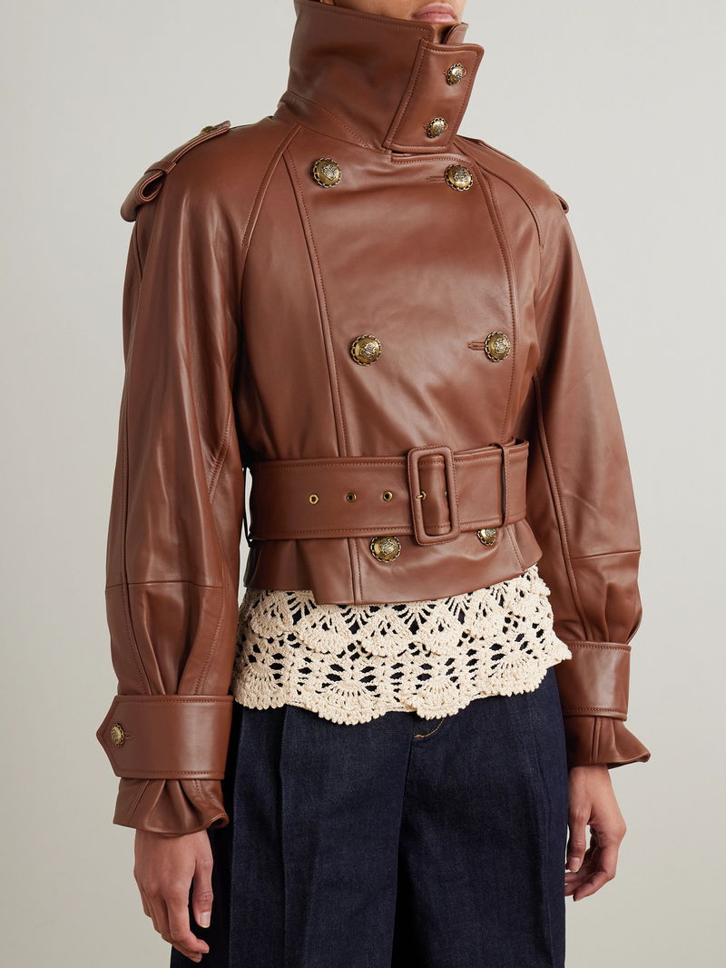 Zimmermann's 'Hypnotic' jacket is inspired by a classic trench, but in a cool, cropped shape. It's made from leather with epaulettes, a belt, storm flap and antiqued medallion buttons. Slip it over a flowy blouse and jeans as per the Fall '25 runway styling.