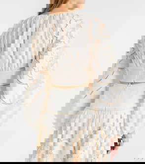 Zimmermann's white Juliette cropped top is intricately cross-stitched with flowers in a nod to antique textiles. It's crafted from breathable linen with blouson sleeves and front ties that secure in a feminine bow. Add shorts and sandals for a poetic summer look.