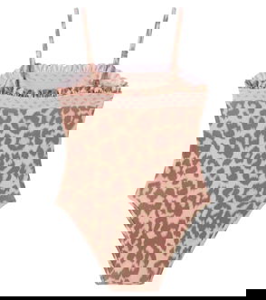 Swimsuit, Floral-print, Stretch-polyamide, Ruffled, Halterneck, Embroidered trims, Fully lined, Ties at neck.