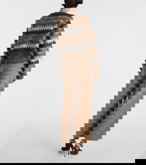 Zimmermann’s beige Ladybeetle sweater is knitted from a wispy blend of mohair and silk for a romantic gauze-like finish. Shaped to a high-neck silhouette, it’s accented across the torso with festoons of macramé tassels and wide bands of ribbing at the hem and sleeve cuffs. Balance the silhouette by wearing it with flared-leg trousers.