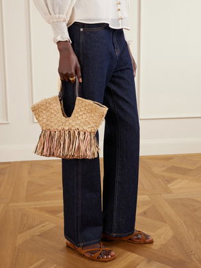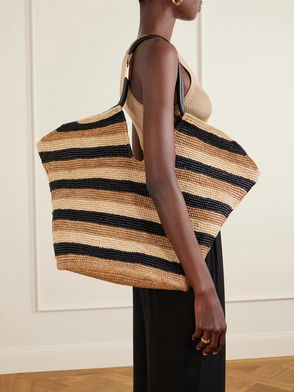 Raffia might seem like an unexpected fabric to spotlight this shift, but as always, the label presents it effortlessly - finishing the look with warm leather trims and gold-tone hardware.