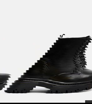 Combat boots, Leather, Round toe, Lace-up front, Zip fastening along back, Rubber lug sole.