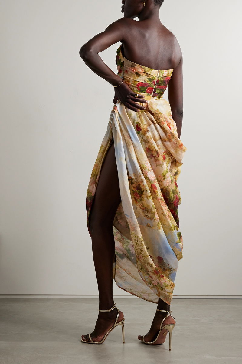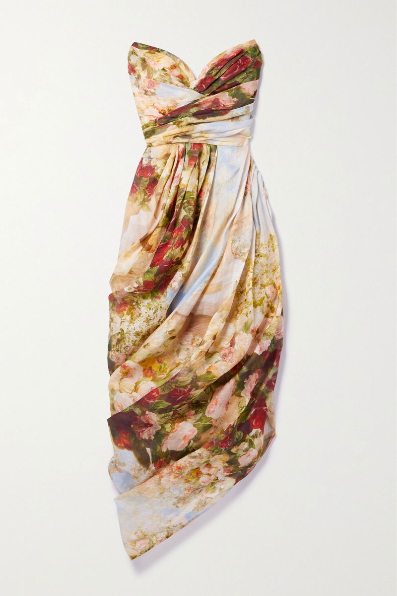 Zimmermann's 'Luminosity' midi dress is one of the many floral-printed pieces in the label's Fall '23 collection - the motifs are inspired by the romantic paintings of Australian artist Rupert Bunny. Made from linen and silk-blend, it has a wrap-effect bodice fitted with internal boning and underwired cups for support. The elegantly draped skirt falls to an asymmetric hem.