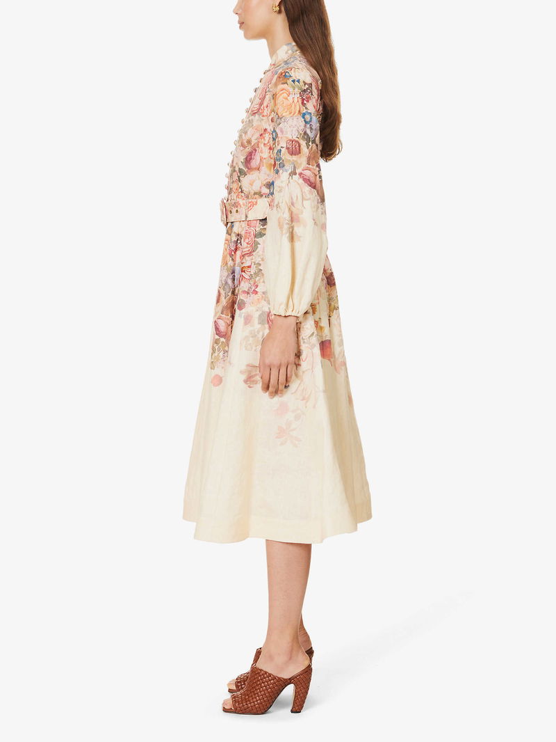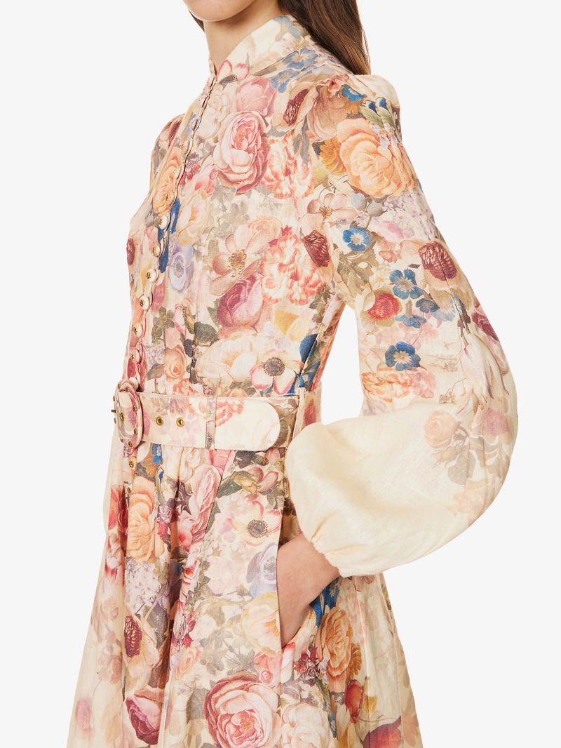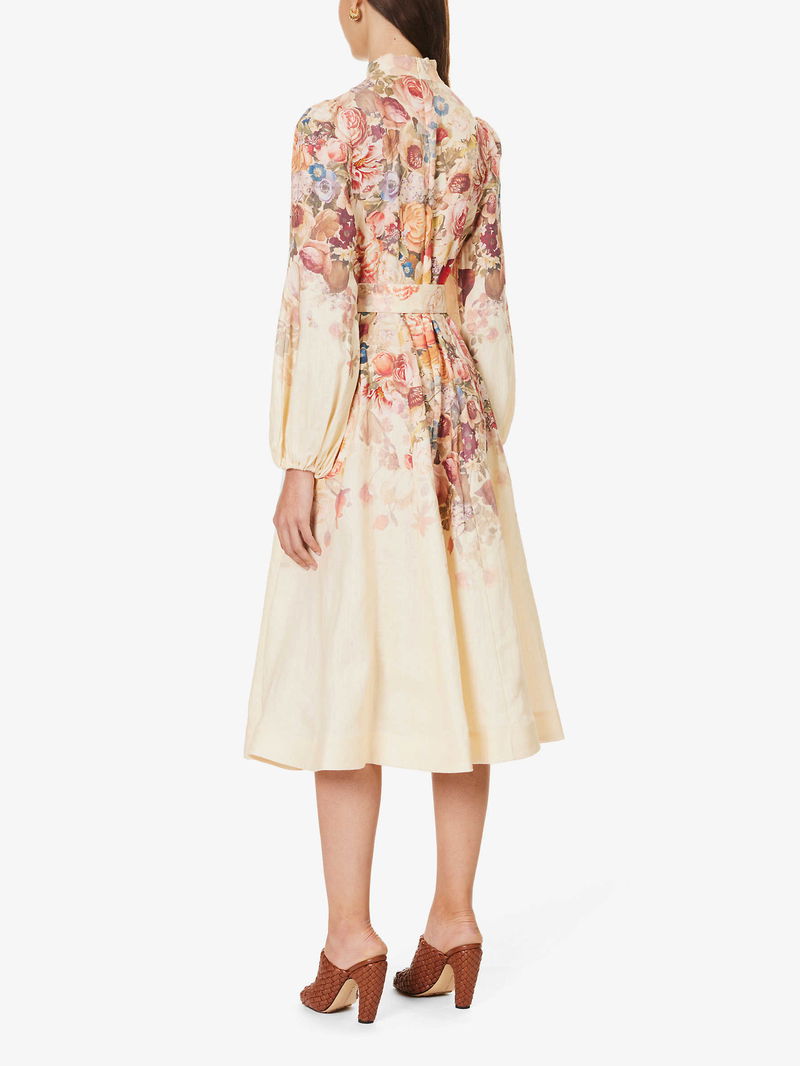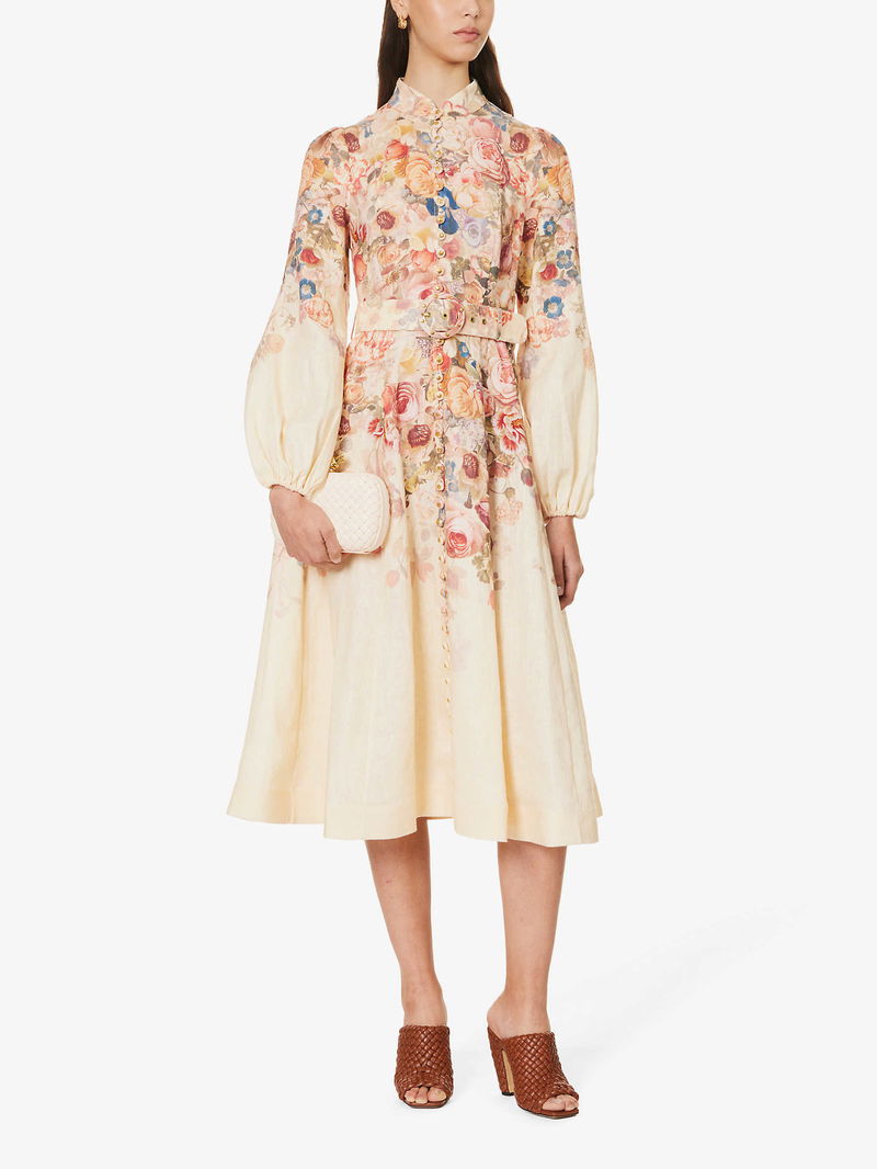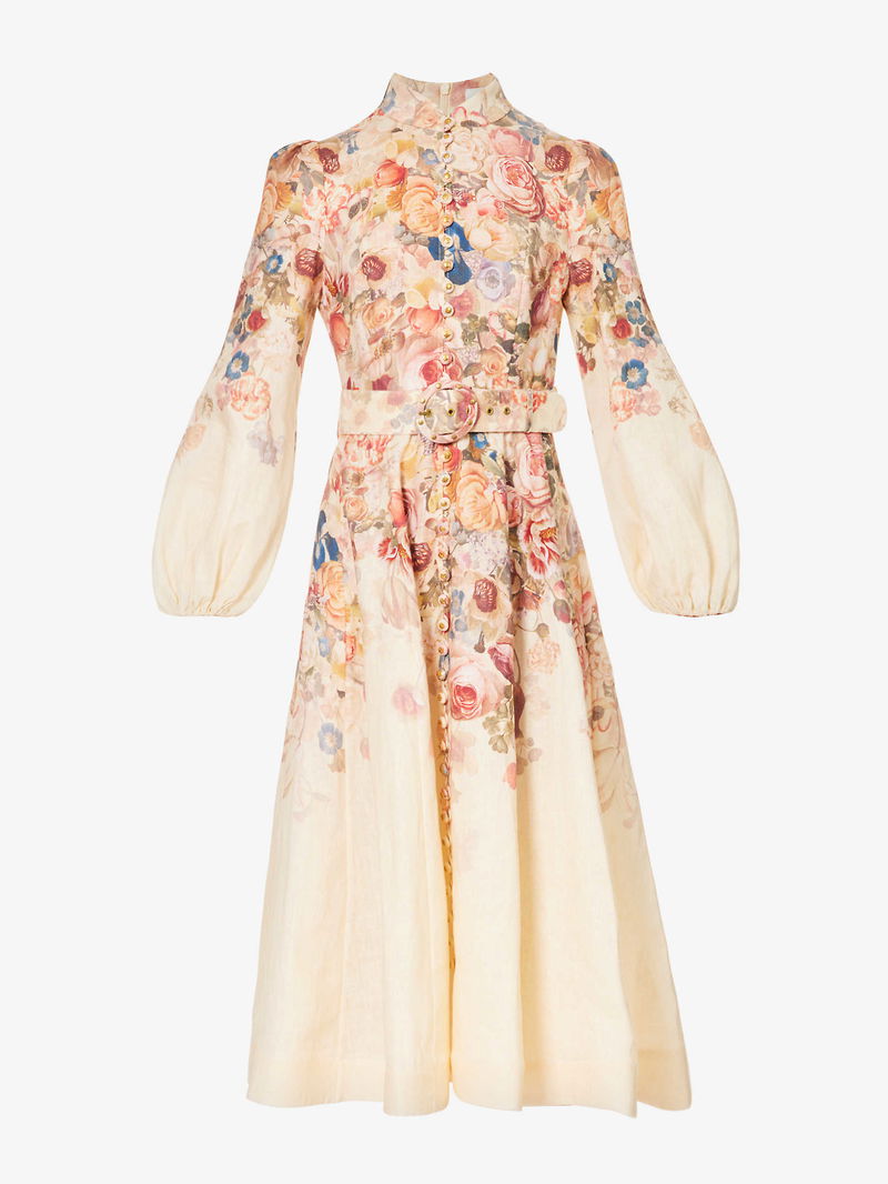 Selfridges Says: Whether you’re counting kangaroos hopping across sun-splattered beaches or spying clouds of tropical fish encircling ancient shipwrecks, Zimmermann has your Aussie adventures covered with their treasure chest of mermaid-approved ensembles. Spun from breezy linen, the Luminosity dress is sculpted with a mandarin collar and stitched with billowing balloon sleeves. As for the label’s bouquet of blooms? They’re festooned along the button-up neckline and spill in bunches to the flared hem.