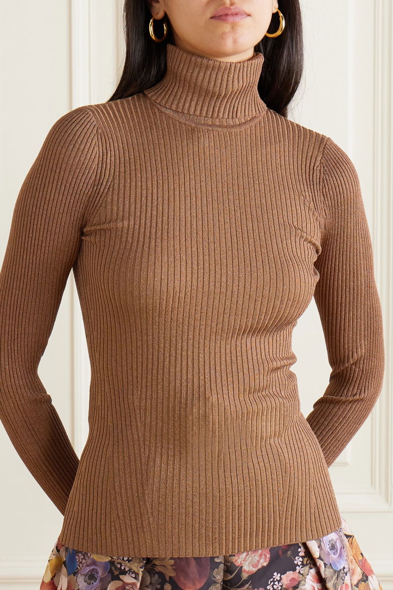 Zimmermann's turtleneck sweater is designed to go with any of the label's romantic skirts or pants - the simplicity will allow floral prints to really sing. It's rib-knitted from wool-blend for a close fit and woven with sparkling bronze threads so the hue looks extra rich.