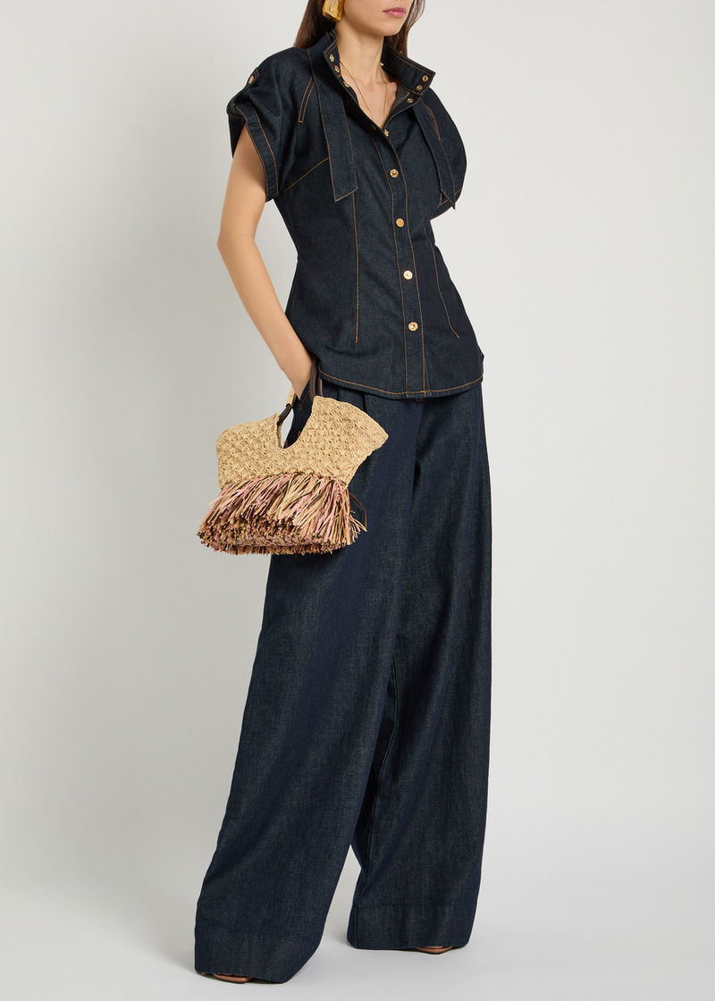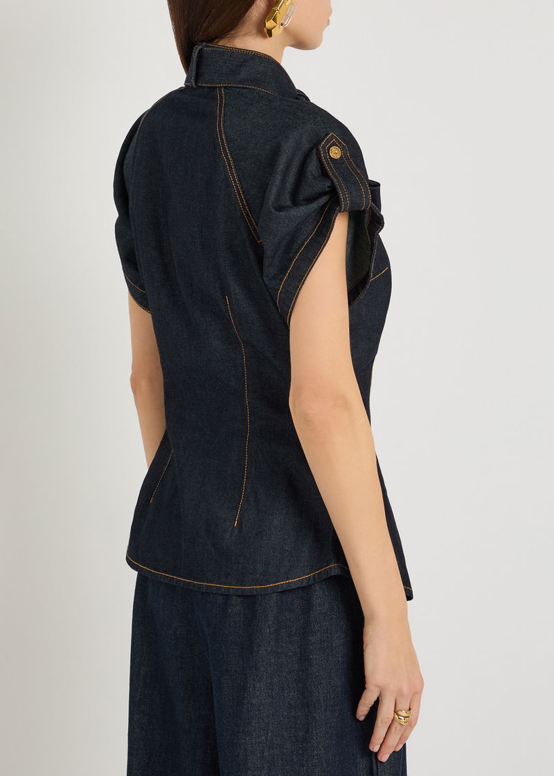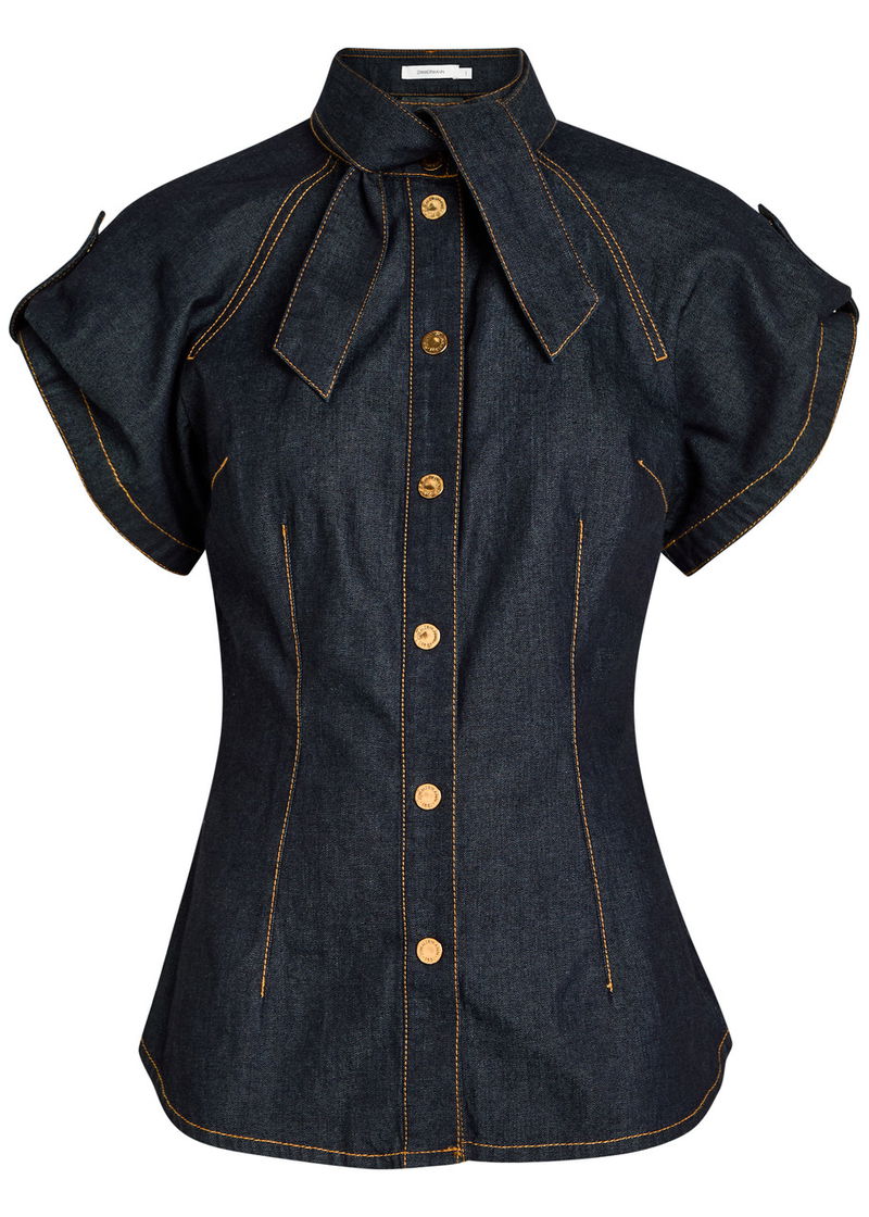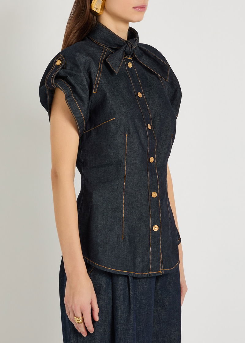 Neck Tie Denim Blouse