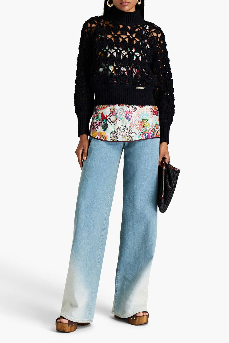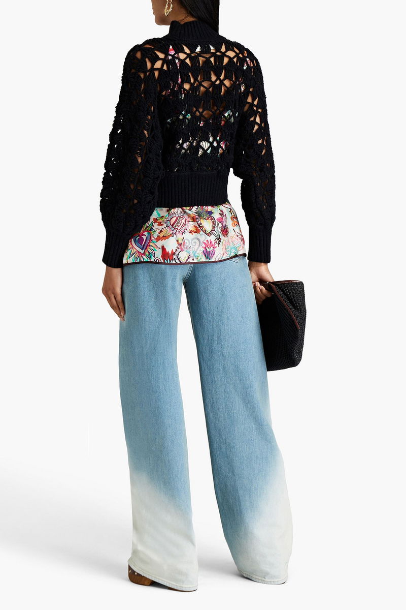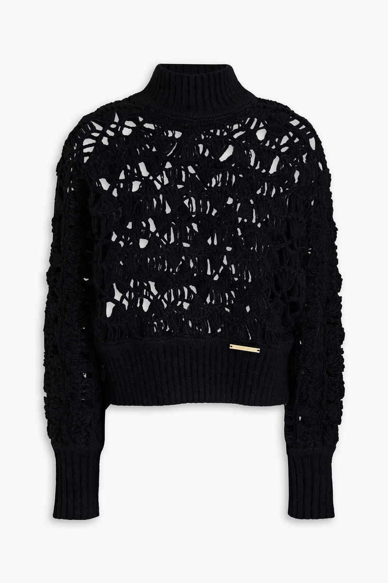 Turtleneck sweater, Open-knit, Wool-blend, Logo-appliquéd, Cropped, Ribbed trims, Slips on, Mid-weight open knit.