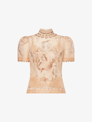 Zimmermann's 'Ottie' shirt is adorned with delicate guipure lace patches reminiscent of vintage doilies.