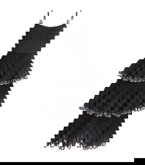 Silk satin dress. · Paneled construction· Scoop neck · Boning at front· Gathering at waist· Seam pockets· Adjustable spaghetti straps· Concealed zip closure at back· Partially lined.