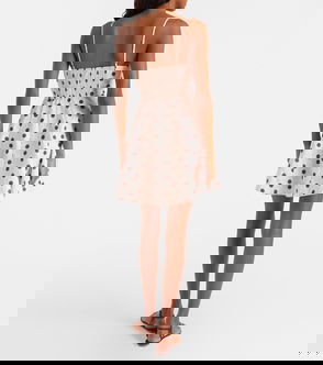 Pop lace-trimmed linen minidress.