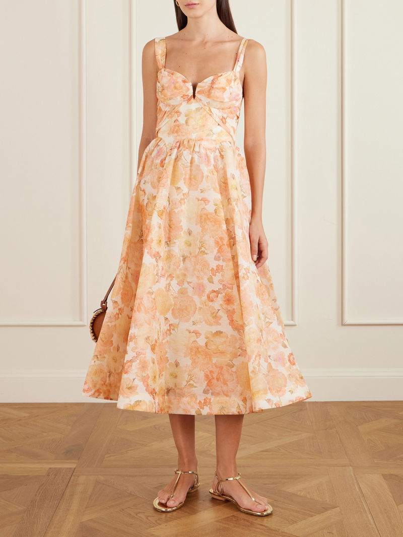 Rebellion Floral-print Linen And Silk-blend Bustier Midi Dress