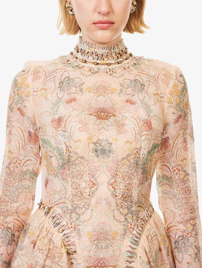 Elegant silhouettes and charming patterns define Zimmermann's designs, including the Rebellion minidress. Printed with eye-catching florals, this design is made from pure silk with underwired cups, lace-up panels, and a ruffled skirt.
