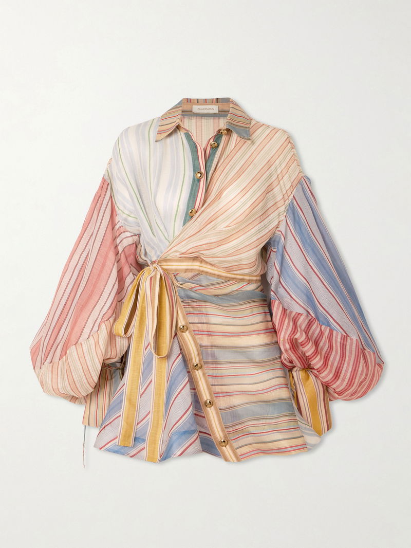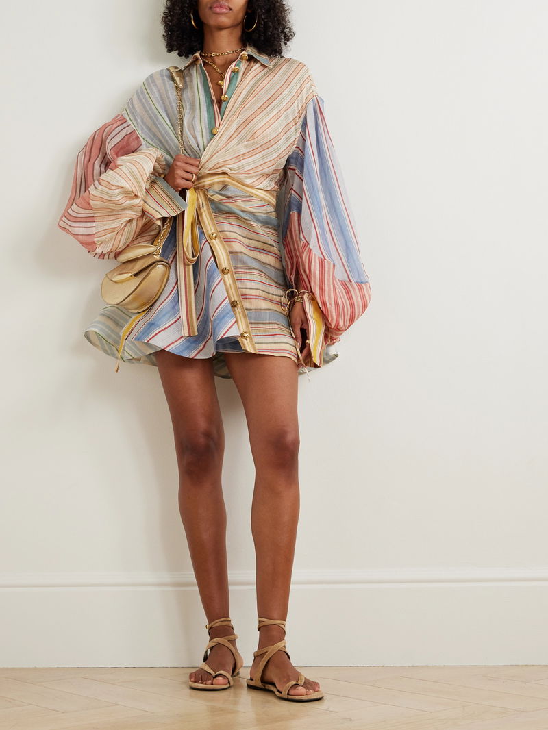 Rebellion Patchwork Striped Linen And Silk-blend Voile Mini Wrap Dress