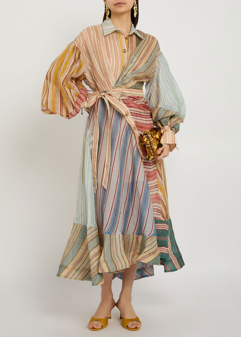 Rebellion Striped Linen And Silk-blend Midi Shirt Dress